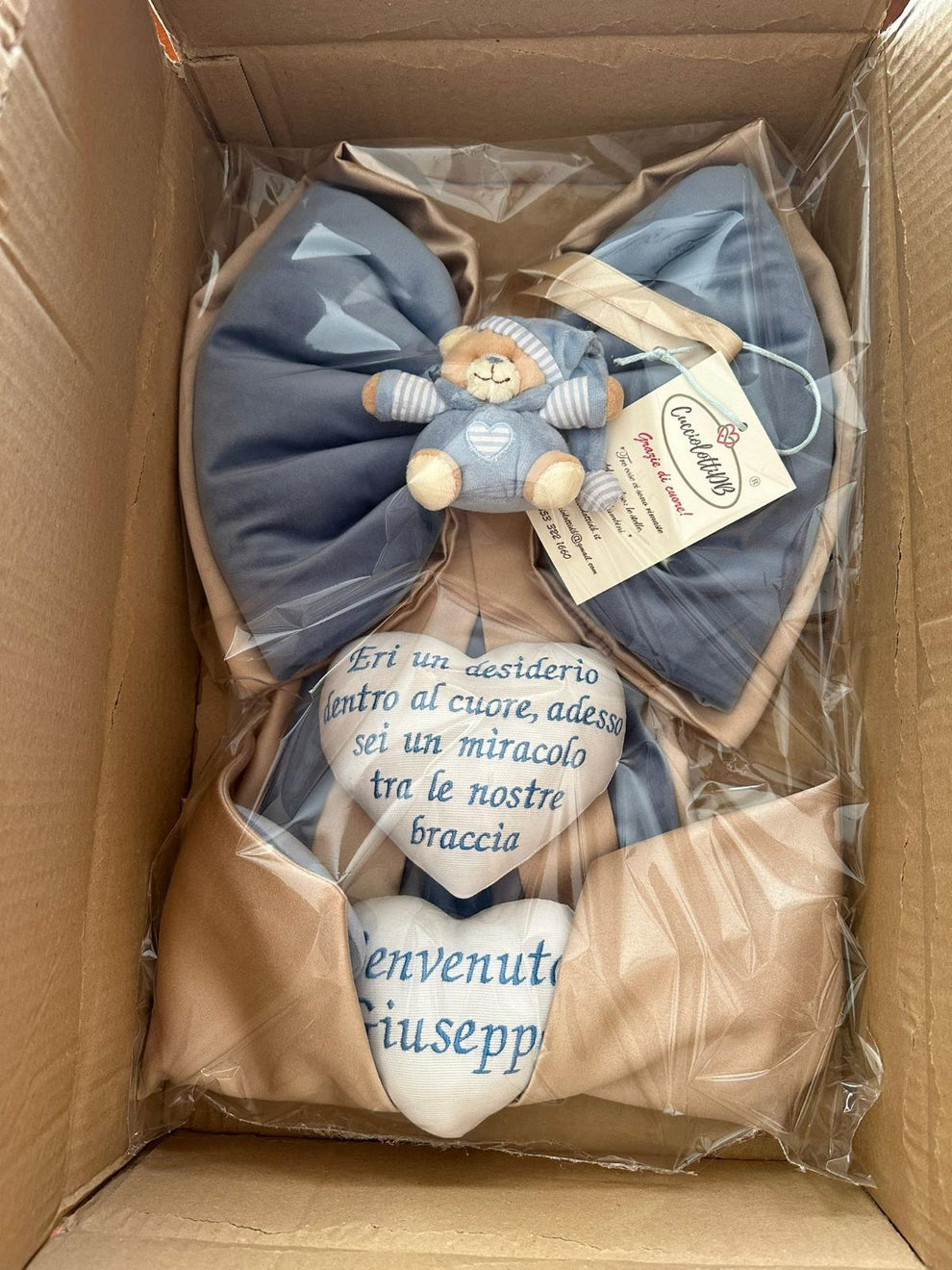 Serietà, disponibilità e precisione!!! Ho ordinato il fiocco 🎀 nascita per mio figlio, ho scelto dal sito uno che mi piaceva personalizzandolo di poco, secondo me era bellissimo... però adesso che mi è arrivato posso dire che dal vivo è MERAVIGLIOSO... Grazie mille 😍🥰